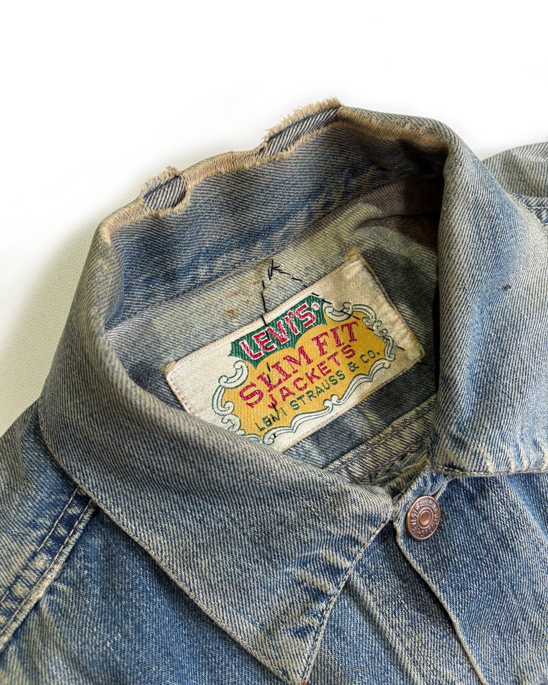 綺麗に縦落ちした 70年代- 80年代製 Levi's デニム トラッカージャケットの袖をカットオフし、