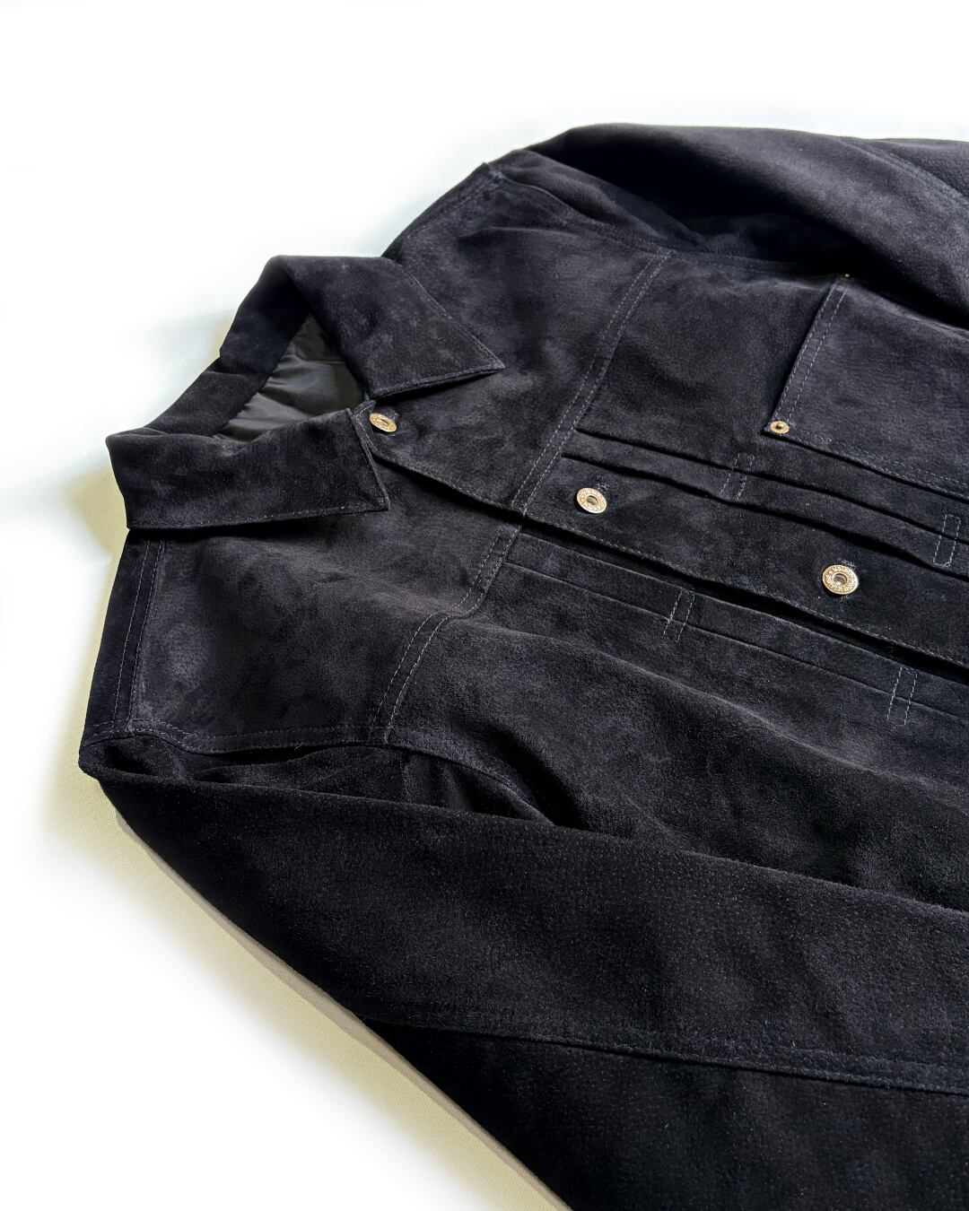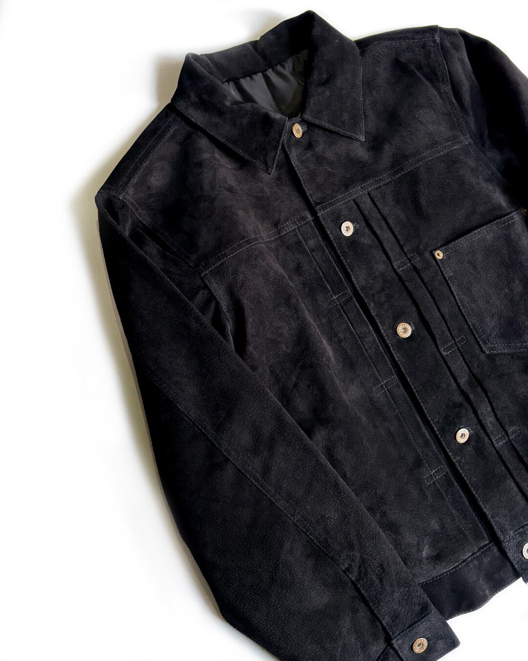 本革スエードで仕上げたジャケットです。