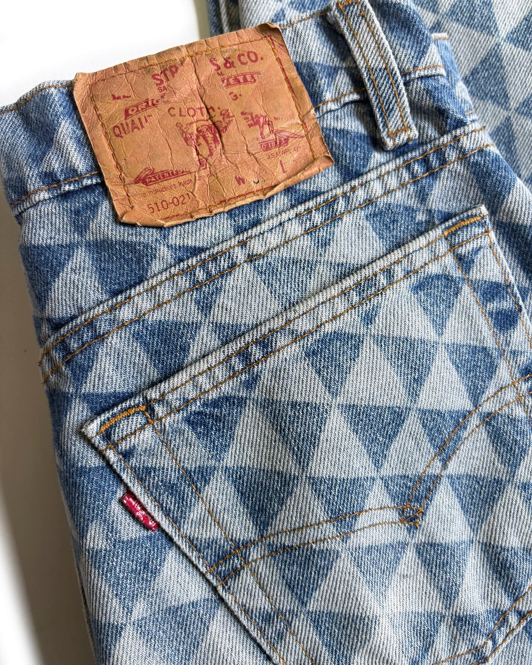 [USED]90's USA製 " Levi's リーバイス/ 510 " 幾何学柄 ブルー ジーンズ