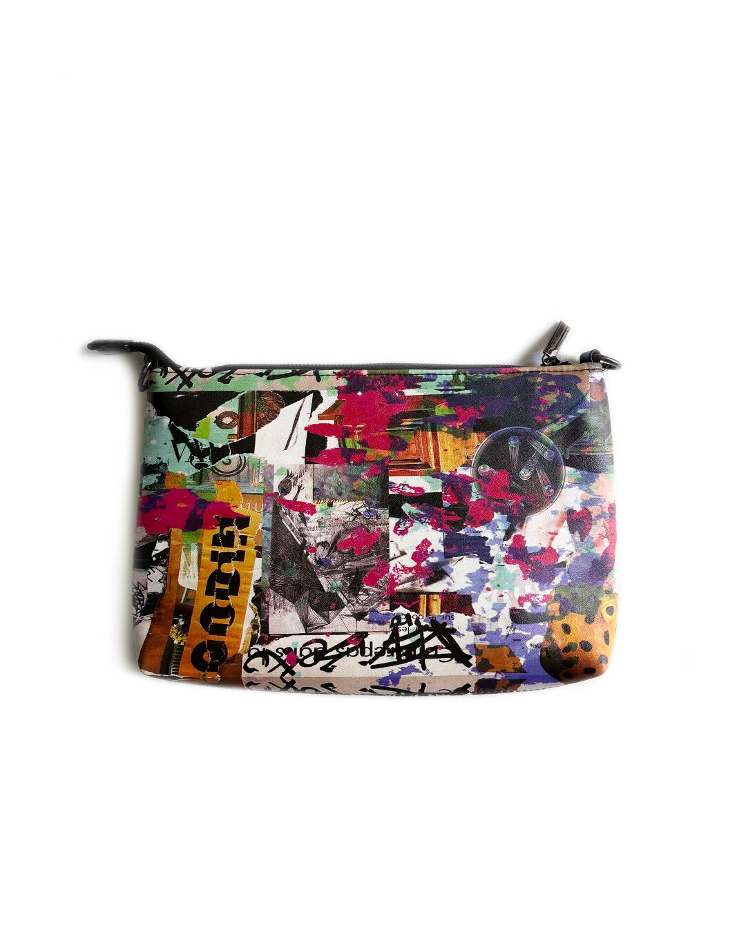 両A面のフェイクレザー マルチウェイ デジタル コラージュ バッグです。