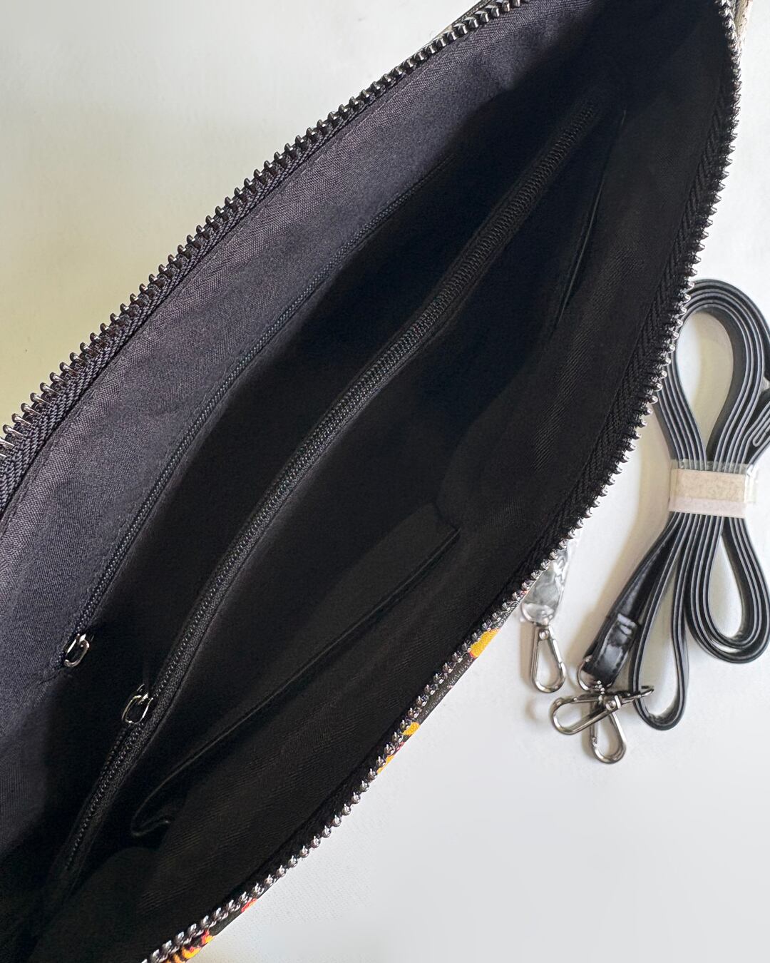 シーンに応じてクロスボディ、クラッチ、。ポーチに変容。