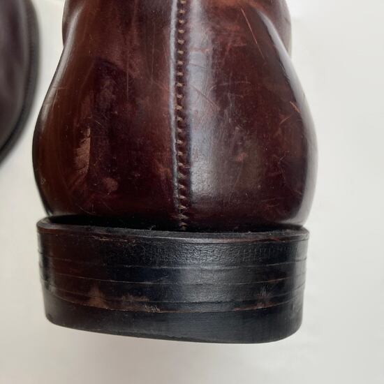 「革のダイヤモンド」とも称される最高級のコードバンを使用しているため履き始めはやや硬めですが、