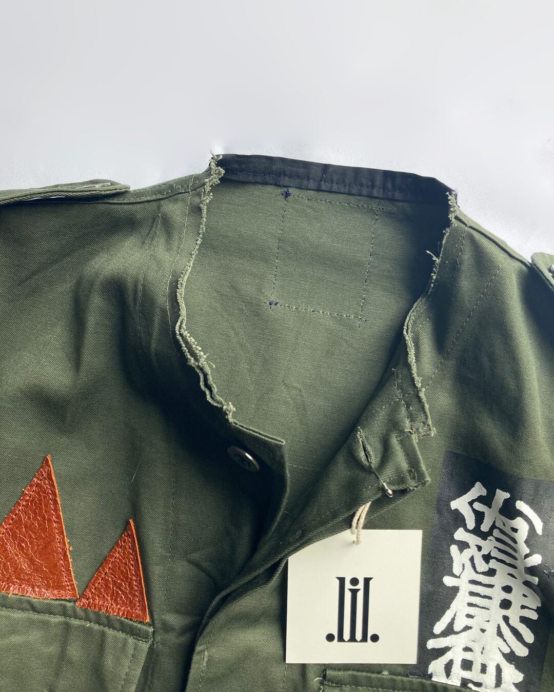 シルクスクリーン、大小のパッチ、スタッズを施しカスタムした一点物です。