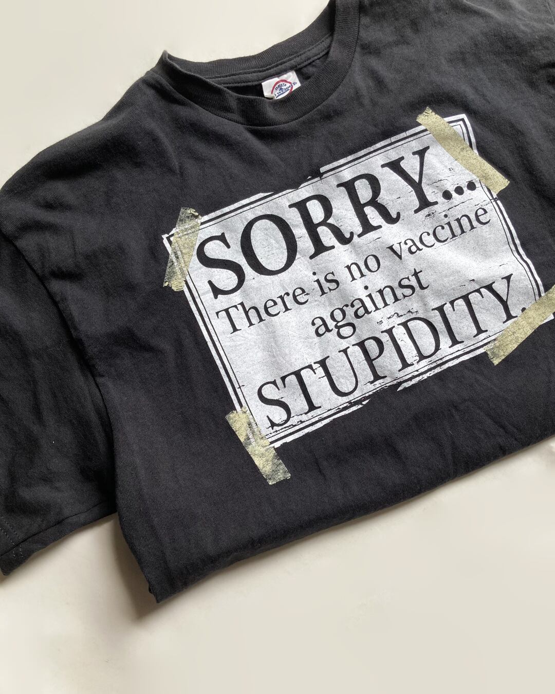 [USED] " no vaccine against STUPIDITY " プリント Tシャツ