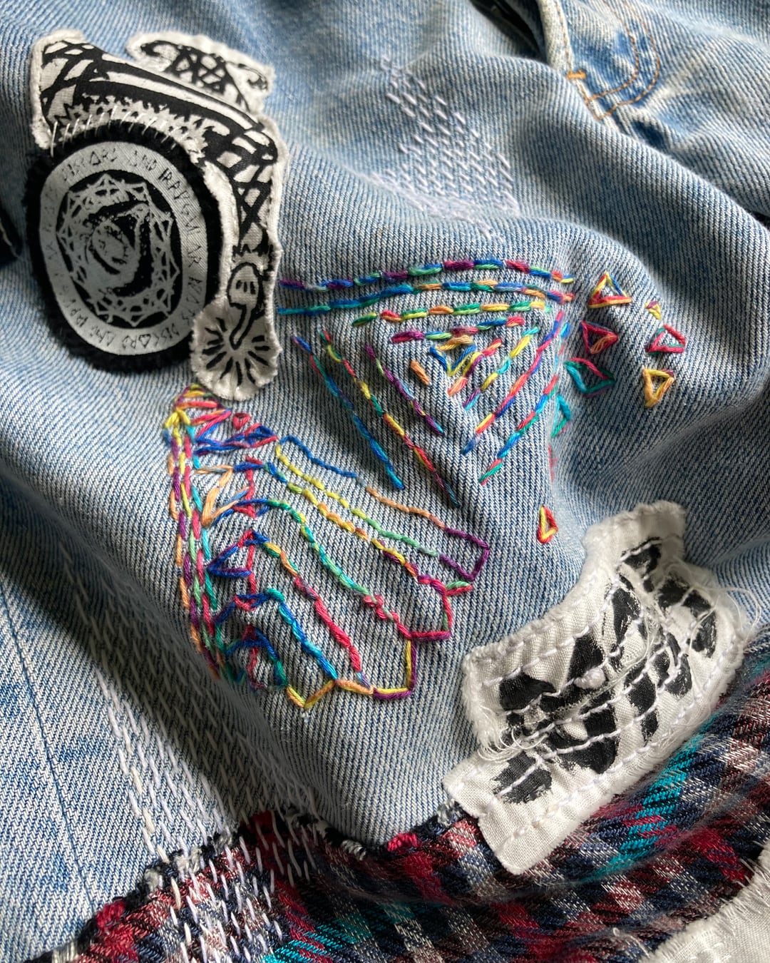 パッチワーク、刺し子、刺繍、オリジナルパッチ、ハンドペイントを施しカスタムした