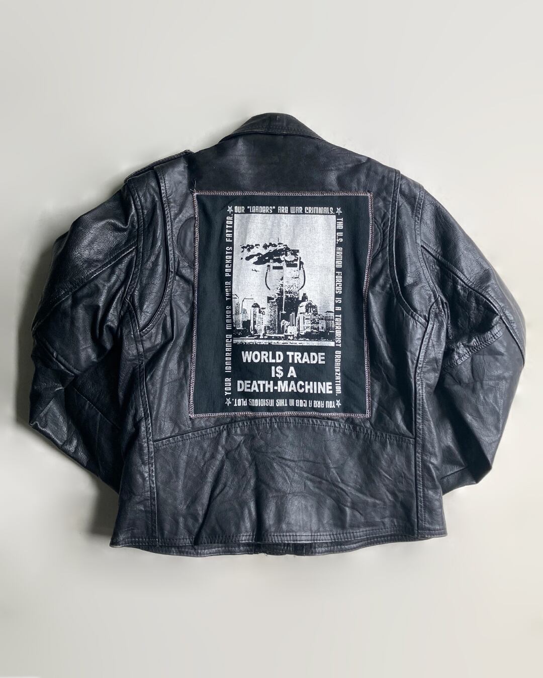 バックにパッチが縫い付けカスタムされた牛本革のライダースジャケットです。