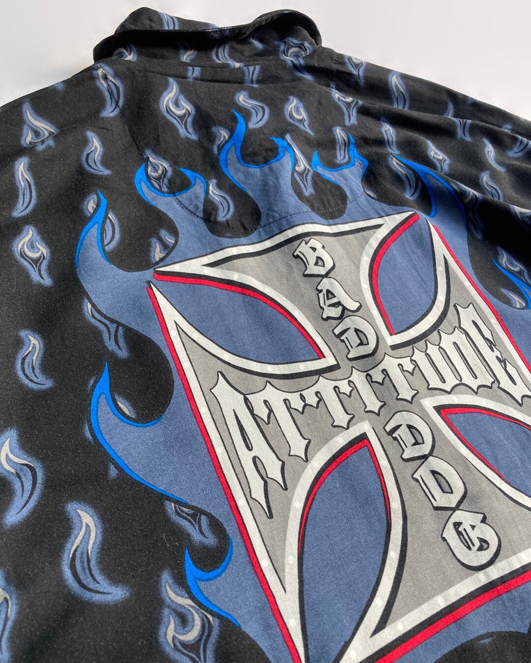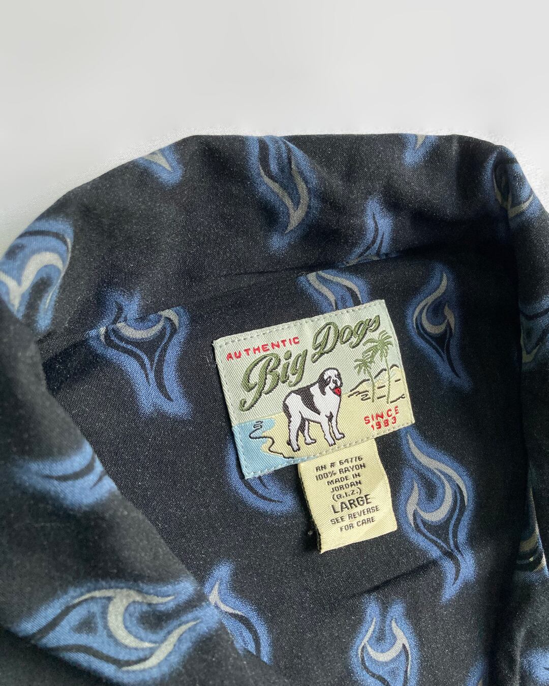 [USED] " BIG DOG " フレイムス 総柄 開襟シャツ