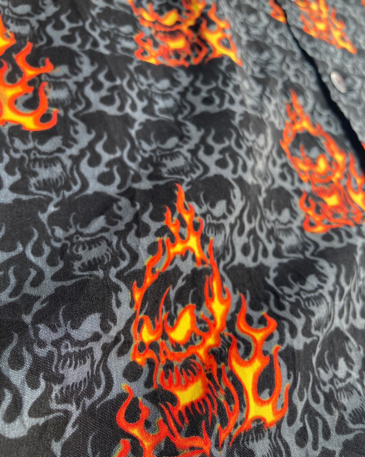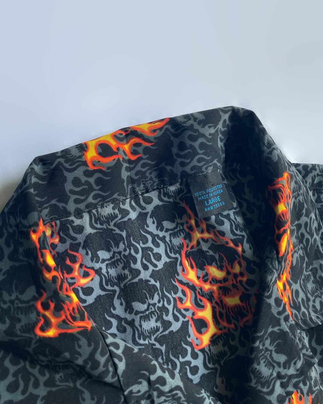 [USED]00's スカル/ フレイムス 総柄 開襟シャツ