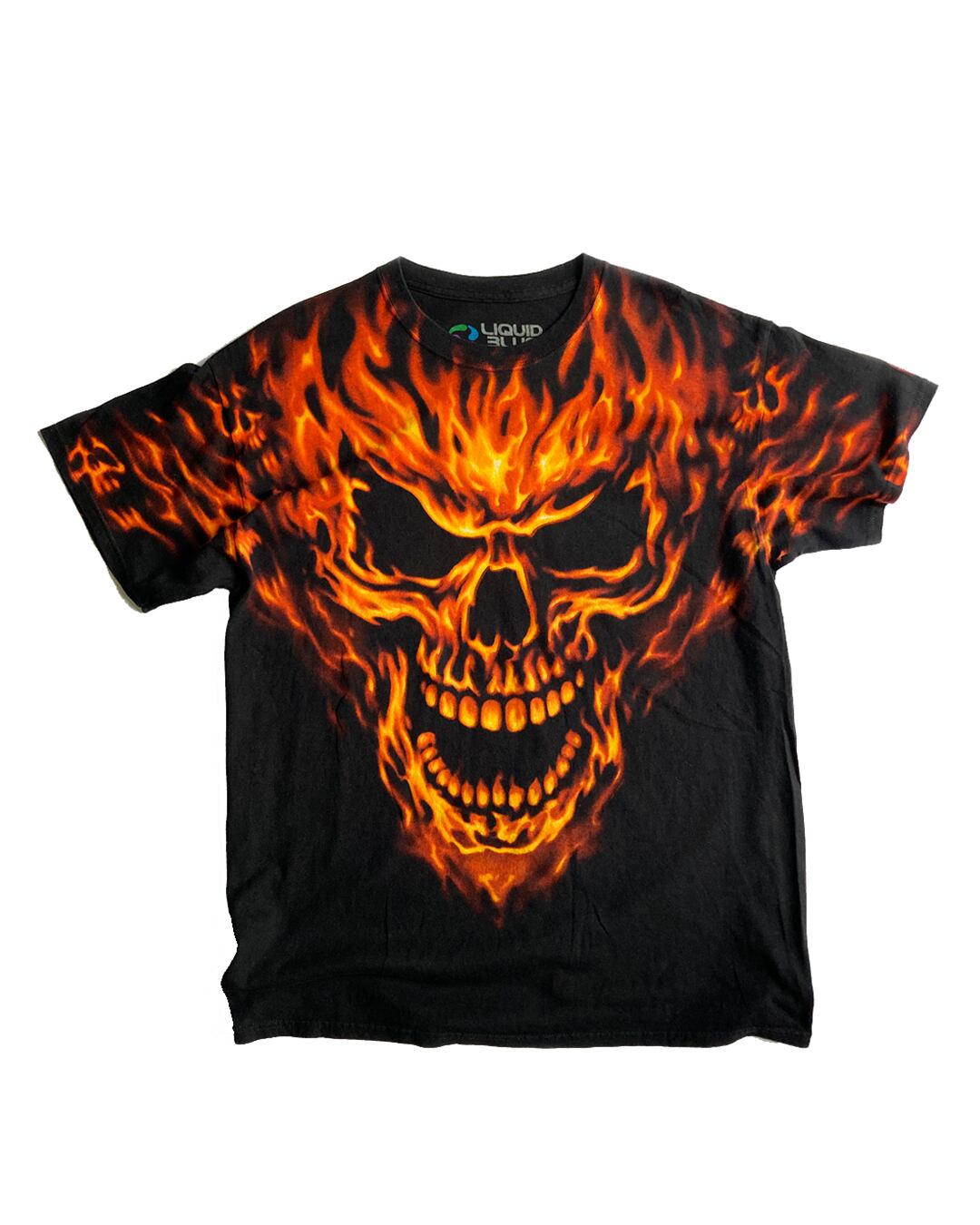 [USED]2008 " LIQUID BLUE " フレイムス スカル 総プリント Tシャツ
