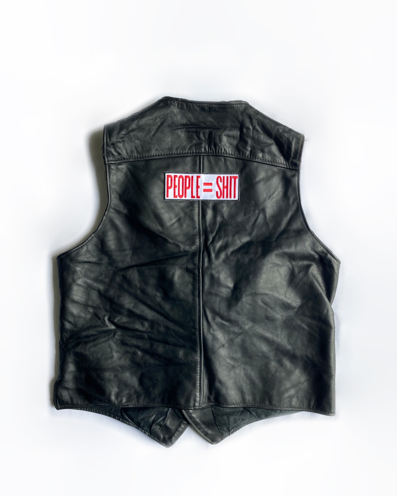 ワッペンにてカスタムが施されたレザーベストです。