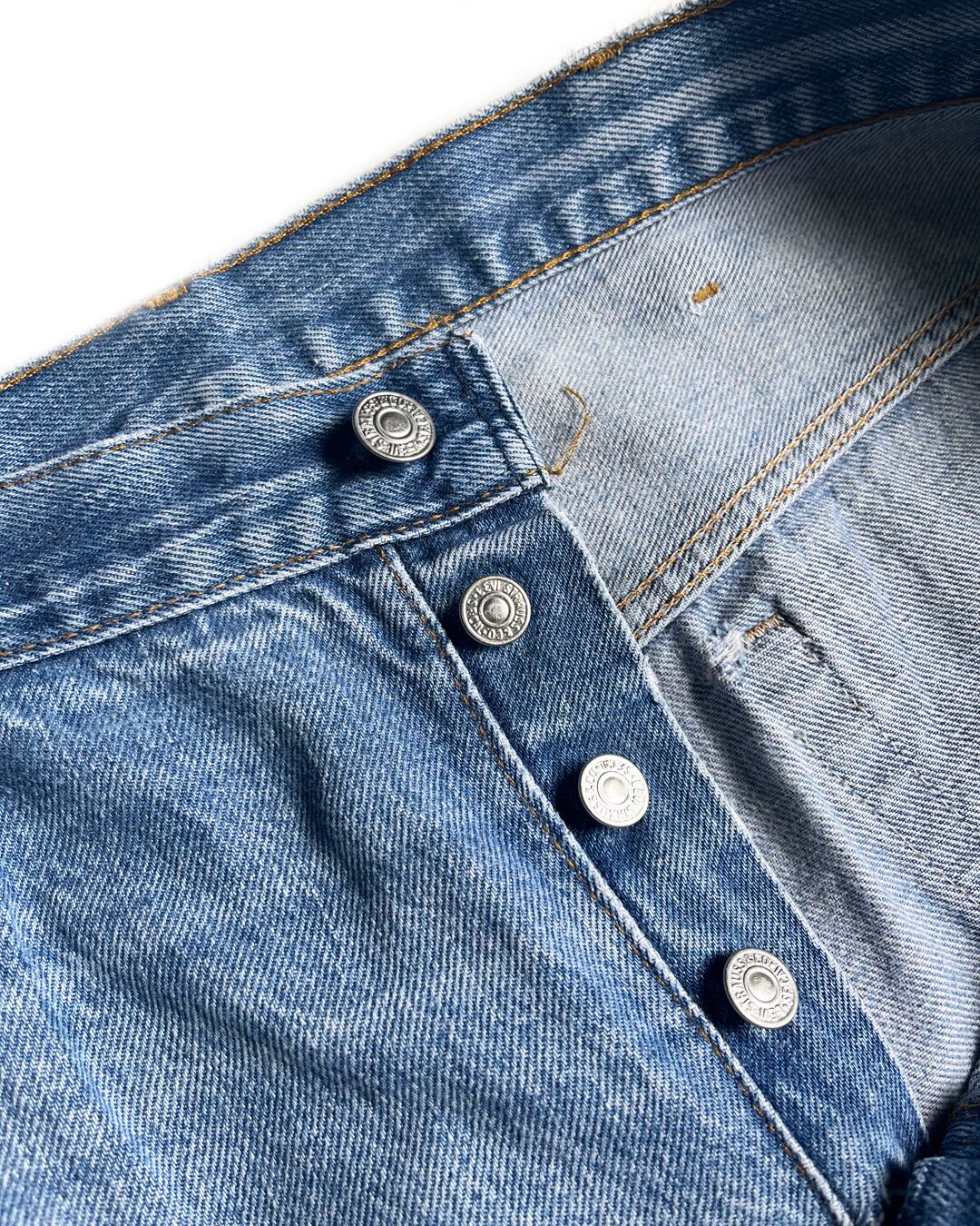 膝から太ももにかけ激しくダメージが入った501ストレート ジーンズ