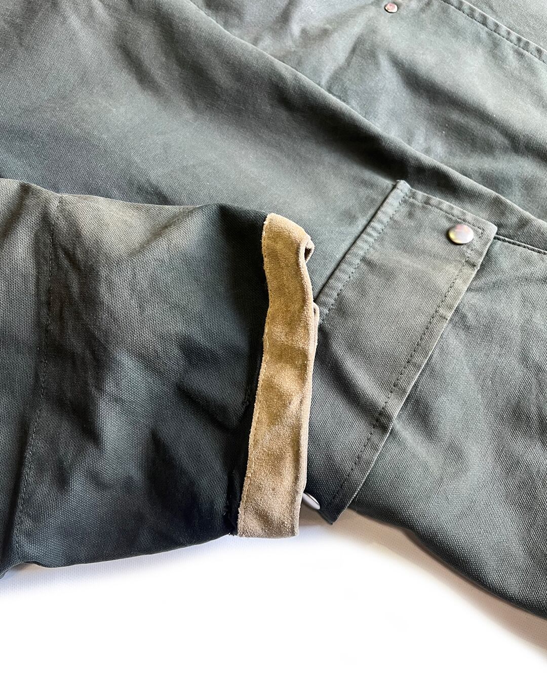 襟はコーデュロイ素材、袖口はスエード素材で切替えてあります。
