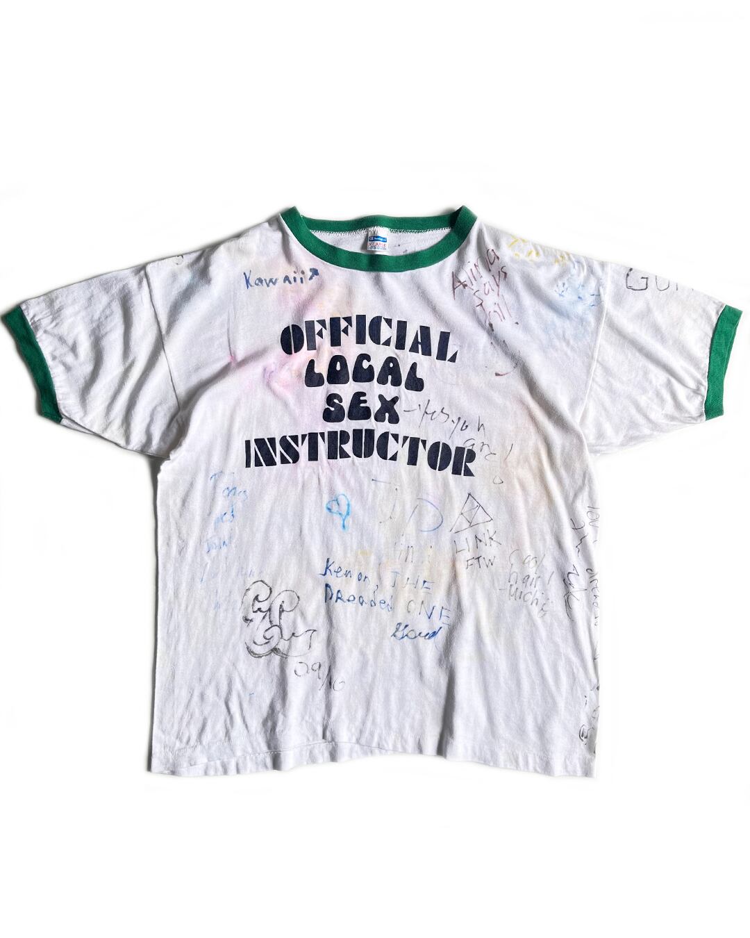 [USED]70's 80's " Champion チャンピオン/ OFFICIAL LOCAL SEX INSTRUCTOR " 落書き リンガー Tシャツ