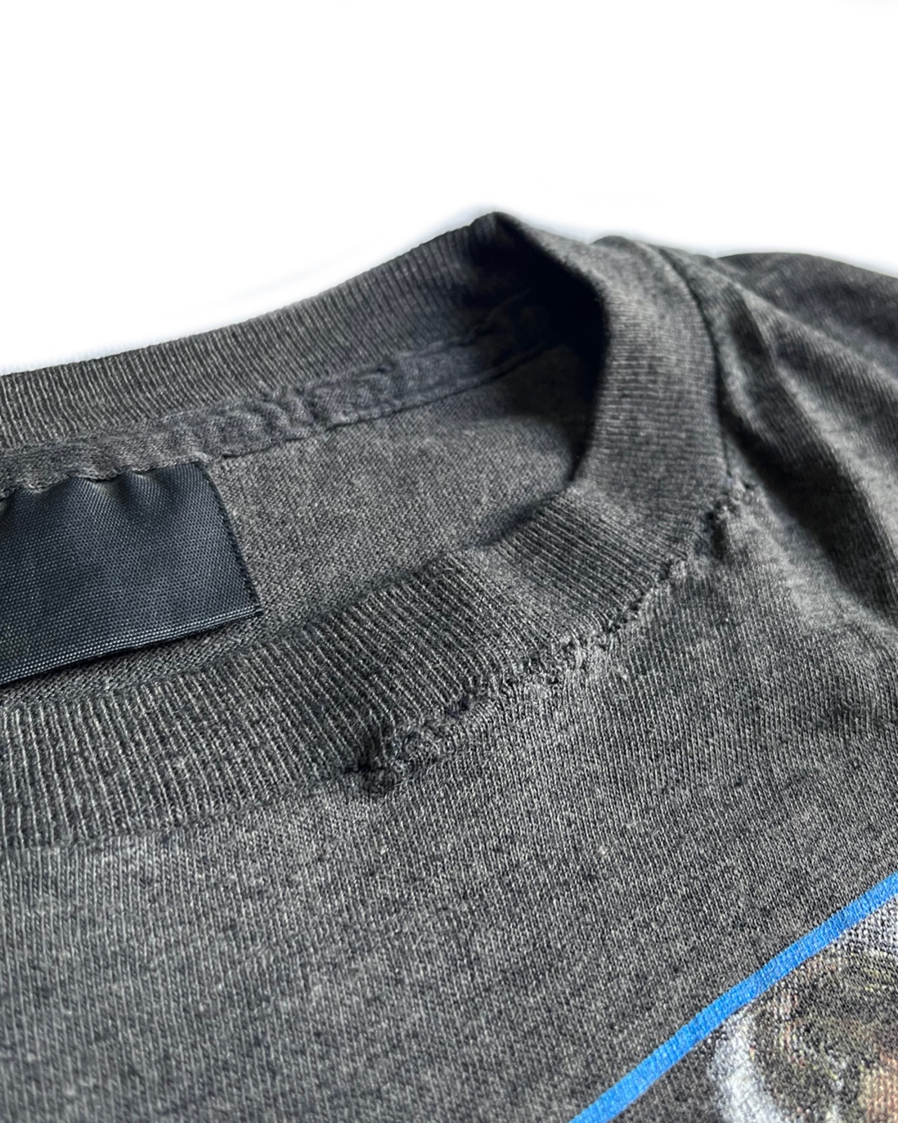 フロントのネックリブ下ステッチのほつれが数カ所、及び、ハンドステッチによる修復(9.5cm大)
