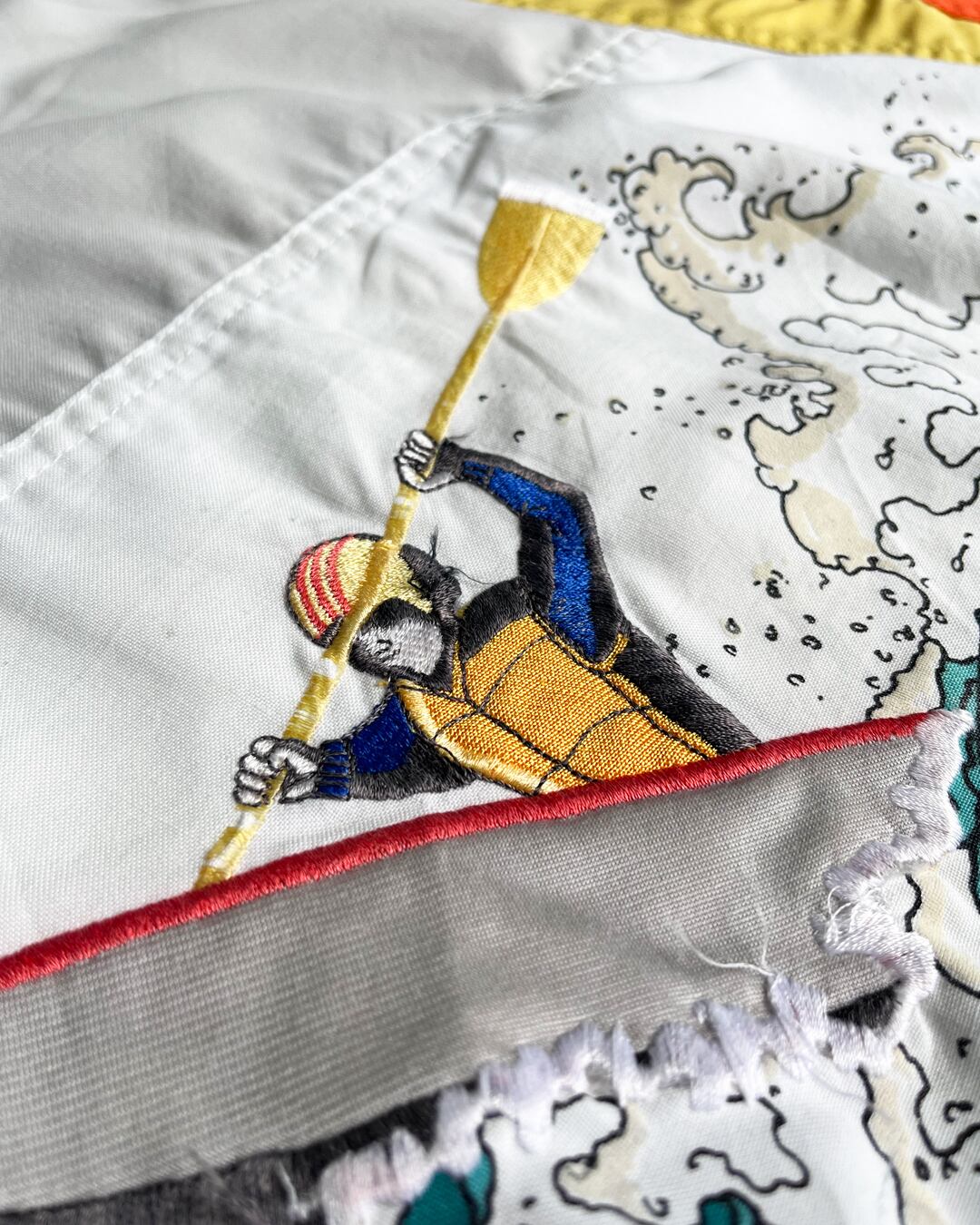 カラーのグラデションに加え、刺繍、ラバープリントと立体的なグラフィックを表現しており、